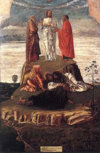 Transfiguration of Christ is the subject of two paintings by the Italian Renaissance master Giovanni Bellini, who finished them, respectively, in 1454-1460 and 1480. The earlier version here is on display in the Museo Correr of Venice; the later one below is now housed in the Capodimonte Gallery of Naples, Italy.