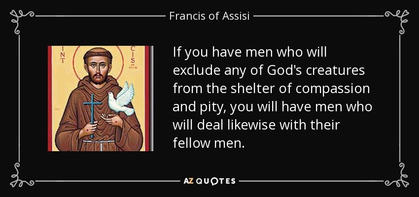 St. Francis and the Animals – Prayer for the Animals » quote-if-you-have-men-who-will-exclude-any-of-god-s-creatures-from-the-shelter-of-compassion-francis-of-assisi-1-18-83
